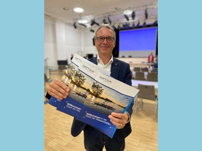 Die neue Stadtinfobroschüre hat 28 starke Seiten, die Datteln von seiner schönsten Seite zeigen. Bürgermeister André Dora hat sie bei der gestrigen Ratssitzung in der Stadthalle vorgestellt.