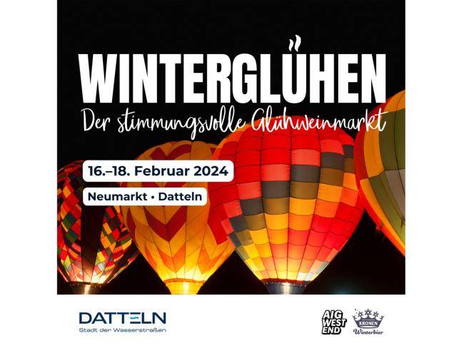 In lauschiger Atmosphäre können Sie von Freitag, 16. Februar, bis Sonntag, 18. Februar 2024, nicht nur eine Vielzahl verschiedener Glühweine probieren, sondern auch heiße Cocktails und Winterbiere. Eine Veranstaltung der AIG Westend e. V., Dortmund, in Kooperation mit der Stadt Datteln.